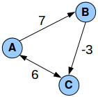 Clearly, this doesn't produce the desired solution, which is {0, 7, 4}. The conversion of negative edge weights in many (all?) cases prevents us from doing anything useful with them at all.