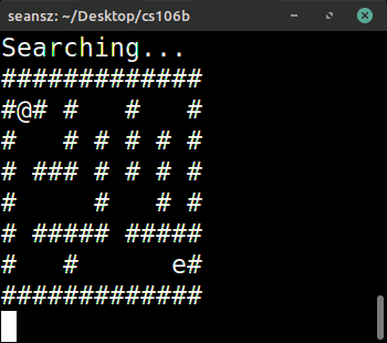 The first example I showed today was a quintessential backtracking application: finding a path through a maze. We started with a Prezi (attached at the top of today's notes), and to help visualize the backtracking process further, I ran an "animation" program I cooked up that allowed us to watch a little dude wandering through a maze, searching for an exit. At each step, the program prints out whether the dude is Searching... (changing the state of the maze and making recursive calls to explore further) or Backtracking... (returning from dead-end recursive calls):