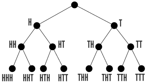 Every time we bump up the input to the coin flip function by 1, we double the number of solutions it produces. That is the key pattern that suggest an O(2n) runtime. (For example, for n = 3, there are 8 possible coin flip sequences: {HHH, HHT, HTH, HTT, THH, THT, TTH, TTT}. If we bump that up to n = 4, we have get 16 sequences: 8 where we place an H on the front (or end) of each sequence from our n = 3 set, and 8 where we place a T at the front (or end) of them: {HHHH, HHHT, HHTH, HHTT, HTHH, HTHT, HTTH, HTTT, THHH, THHT, THTH, THTT, TTHH, TTHT, TTTH, TTTT}.)
