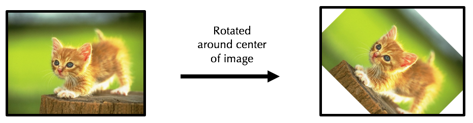 One way to rotate an image clockwise around its center point is as follows: For each pixel in the rotated image at coordinate (x, y), copy the color of the pixel from the original image closest to (xOld, yOld) such that: