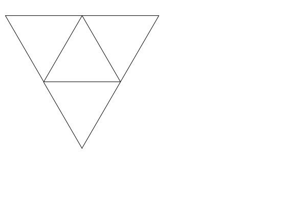 A particular style of solution we want you to avoid is the "pair of functions" solution, where you write one function to draw "downward-pointing" triangles and another to draw "upward-pointing" triangles, and each one calls the other in an alternating fashion. That is a poor solution that does not capture the self-similarity inherent in this fractal figure.