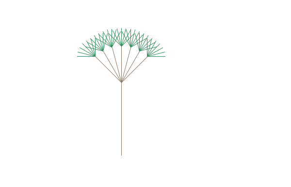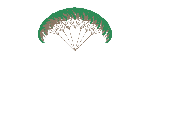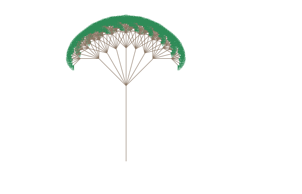 Colors: Inner branches, ones drawn at order 2 and higher, are drawn in a color of #8b7765 (r=139, g=119, b=101), and the leafy fringe branches of the tree (branches drawn at level 1) are drawn in a color of #2e8b57 (r=46, g=139, b=87).