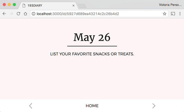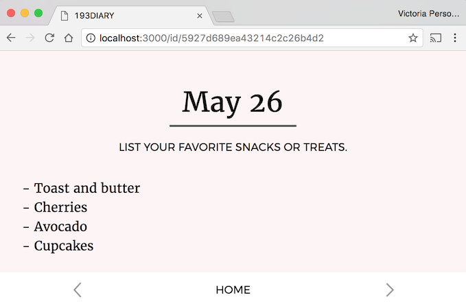 - Entries: An diary entry contains the text content of the entry, and a date (Month / Day / Year, not time) belonging to the entry.