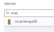 - (Mongo-only): Under “Add-ons”, search for “mLab”. When the option appears, click on it.