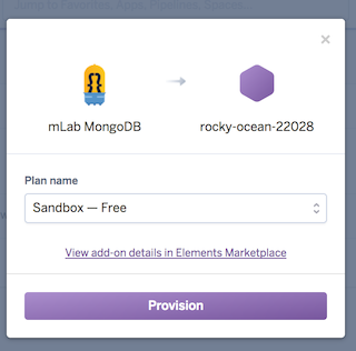 - (Mongo-only): A dialog box will pop up when you click on the mLab option. Click “Provision”