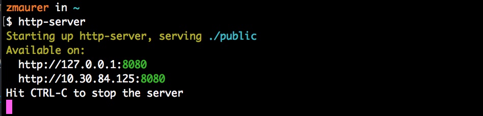 http-serverat the command line. - You should see the following: