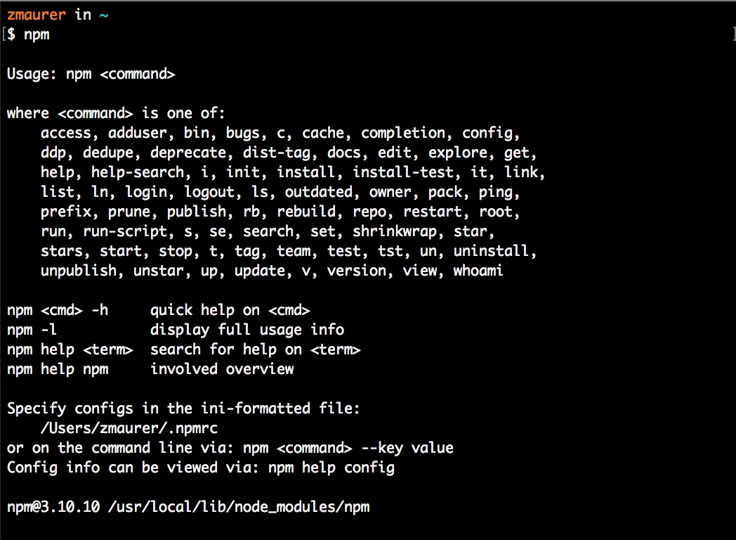 npmafter the command prompt and hit Enter - You should see the following:
