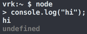 nodeafter the command prompt and hit Enter - You should get a JavaScript REPL, similar to the console in the Chrome inspector.