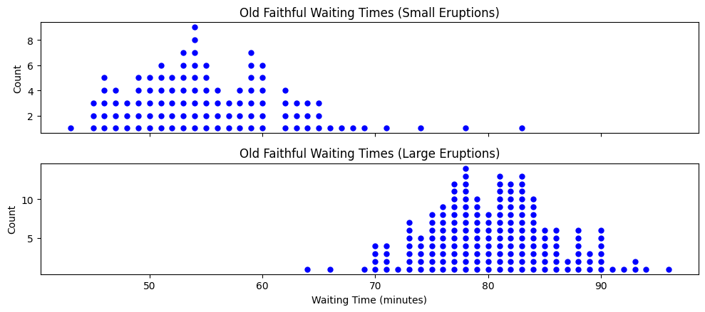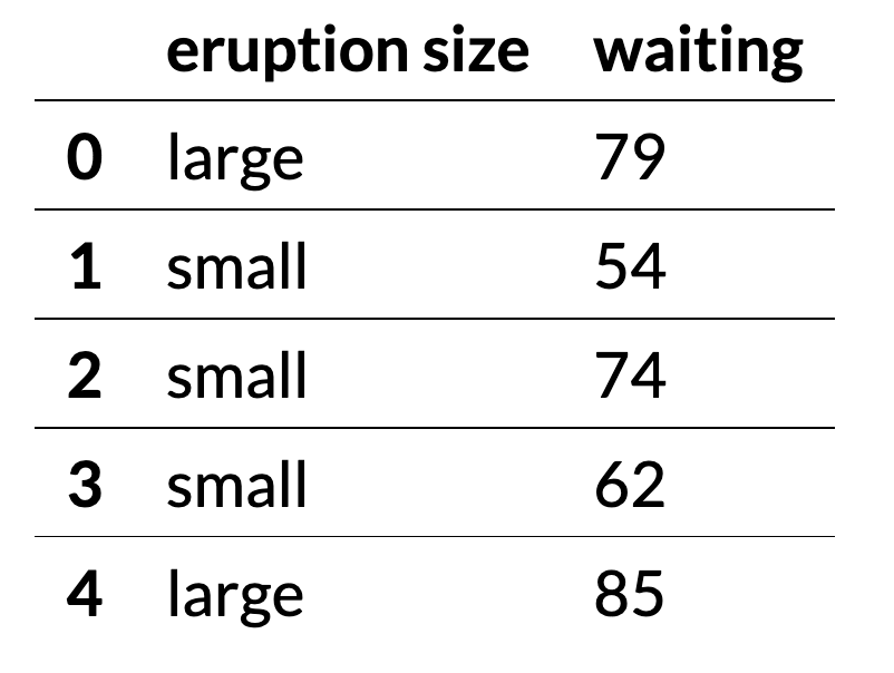 Eruptions are either small (less than 3.5 minutes) or large (3.5 minutes or longer).