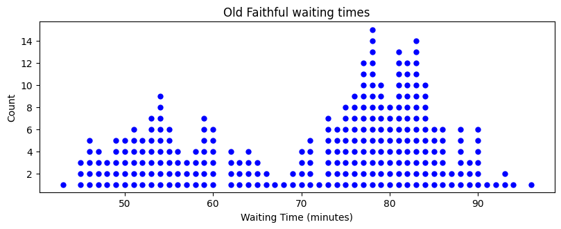 Here are some measurements of the number of minutes between eruptions at Old Faithful. The data is from the 1970s.