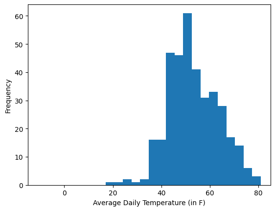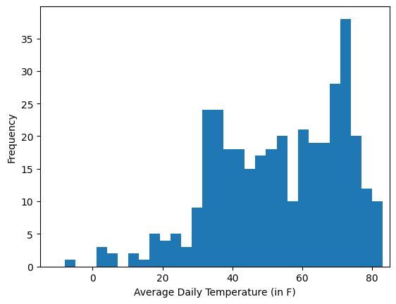Shown below are histograms of daily average temperatures in two cities.