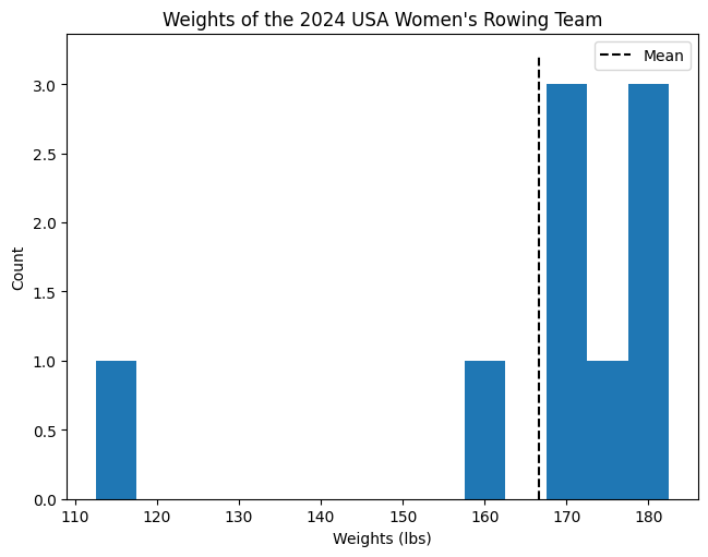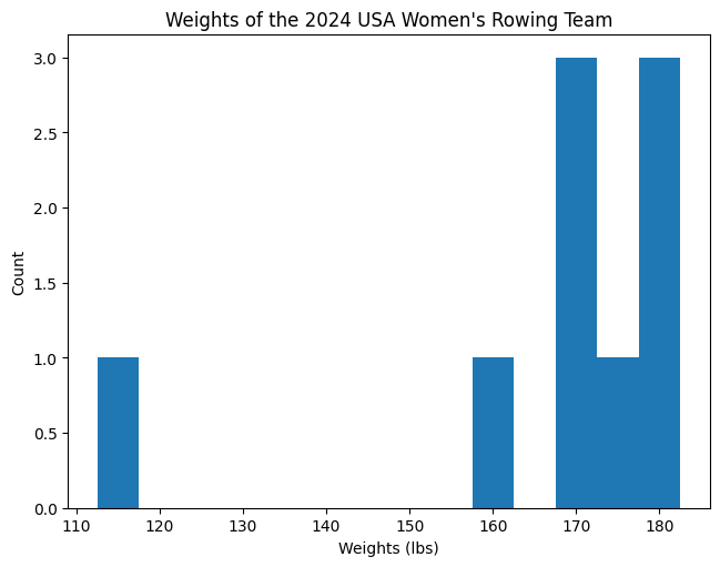 Shown below are stats for the members of the USA Women’s Eight rowing team that competed at the 2024 Paris Olympics.