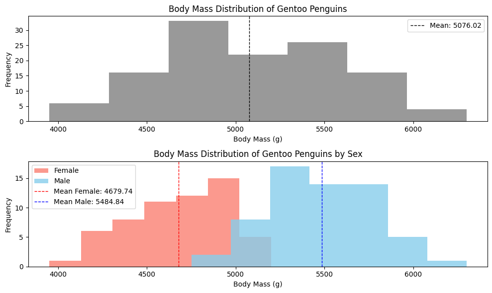 Here, the mean for the entire dataset is on the large end for a female, but on the small end for a male.