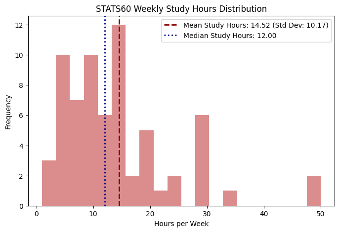 But the variability is really high; in my opinion, neither the mean (14.5 hrs) nor the median (12 hrs) can be taken as representative of a “typical” student.