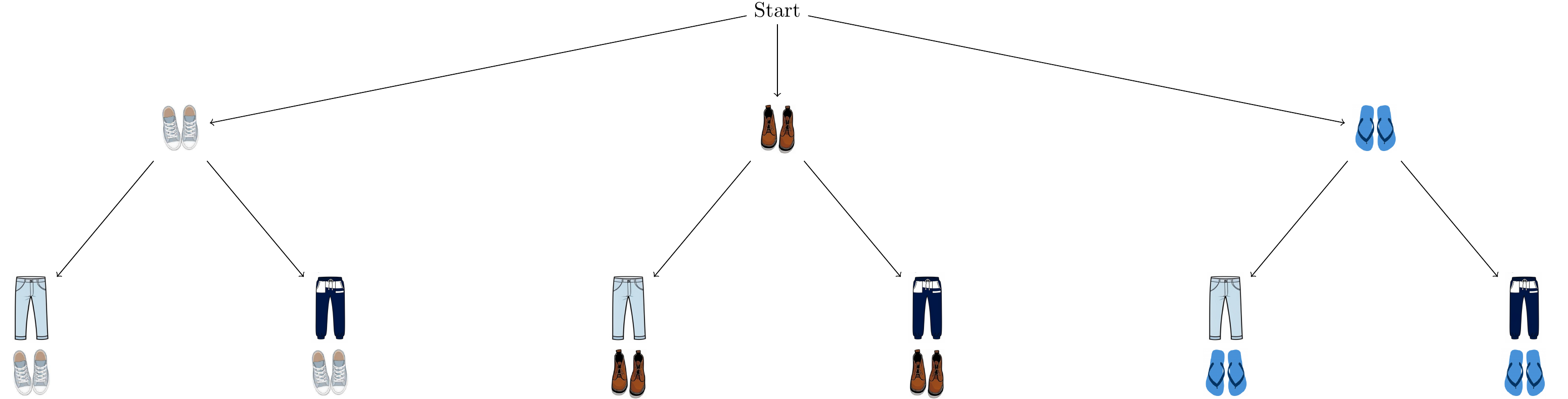 First picking one of 3 pairs of shoes.