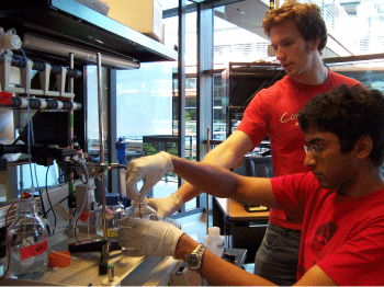 Sylvan and Ashwin setting up the low pressure chromatography system.