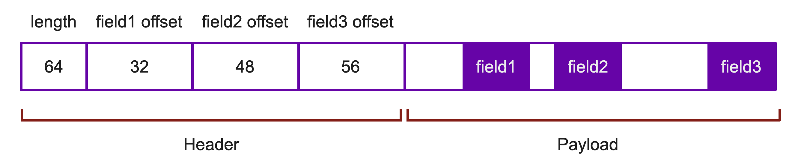 To motivate our discussion, let’s imagine that we are dealing with a server that receives variable-length messages over a network. Each message has a header with metadata about how long the message is and where the various fields are inside of the messsage, followed by a payload containing the actual message data: