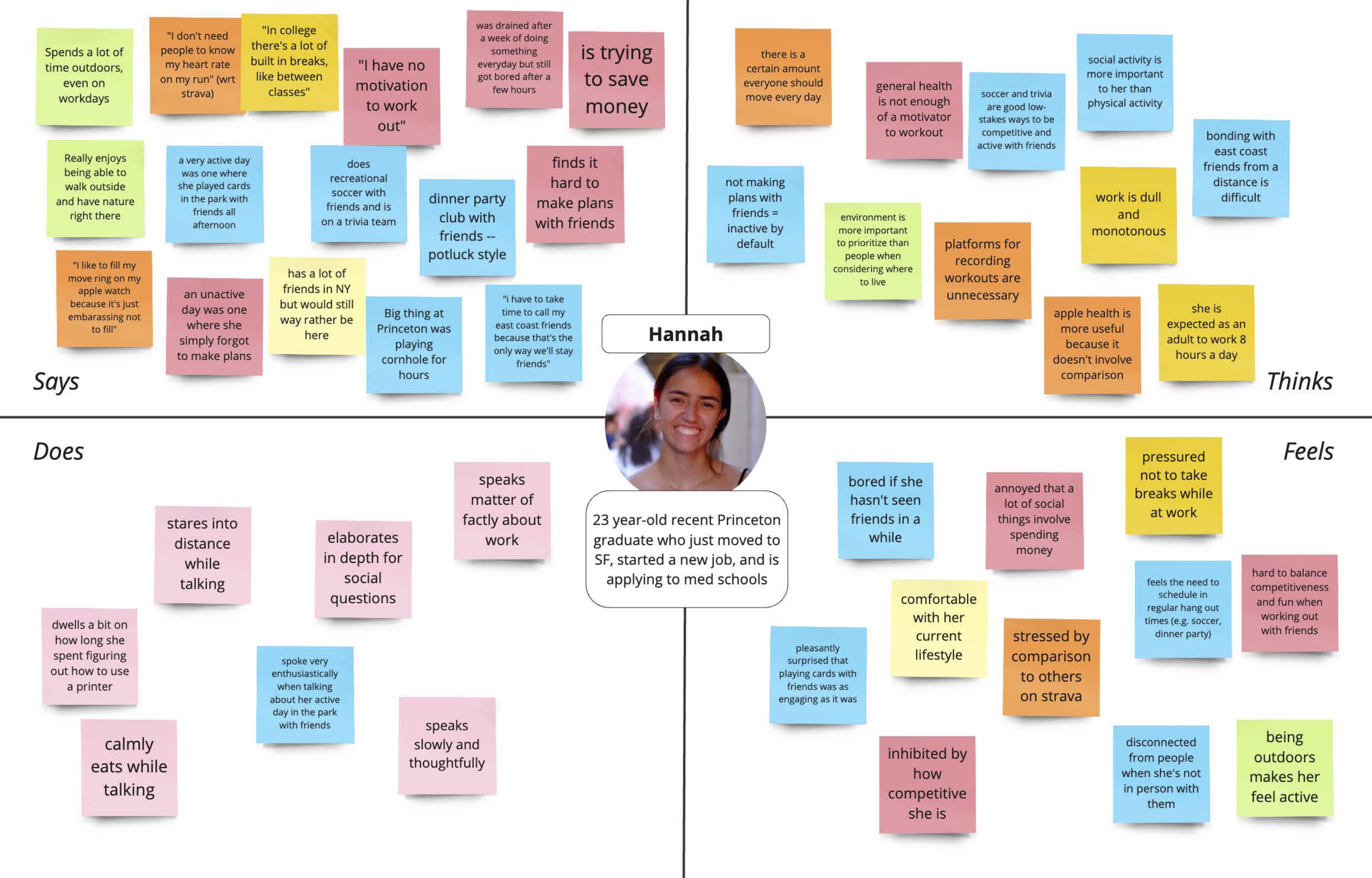 Exploring pain points and needs in our problem domain of staying active when lifestyles change.