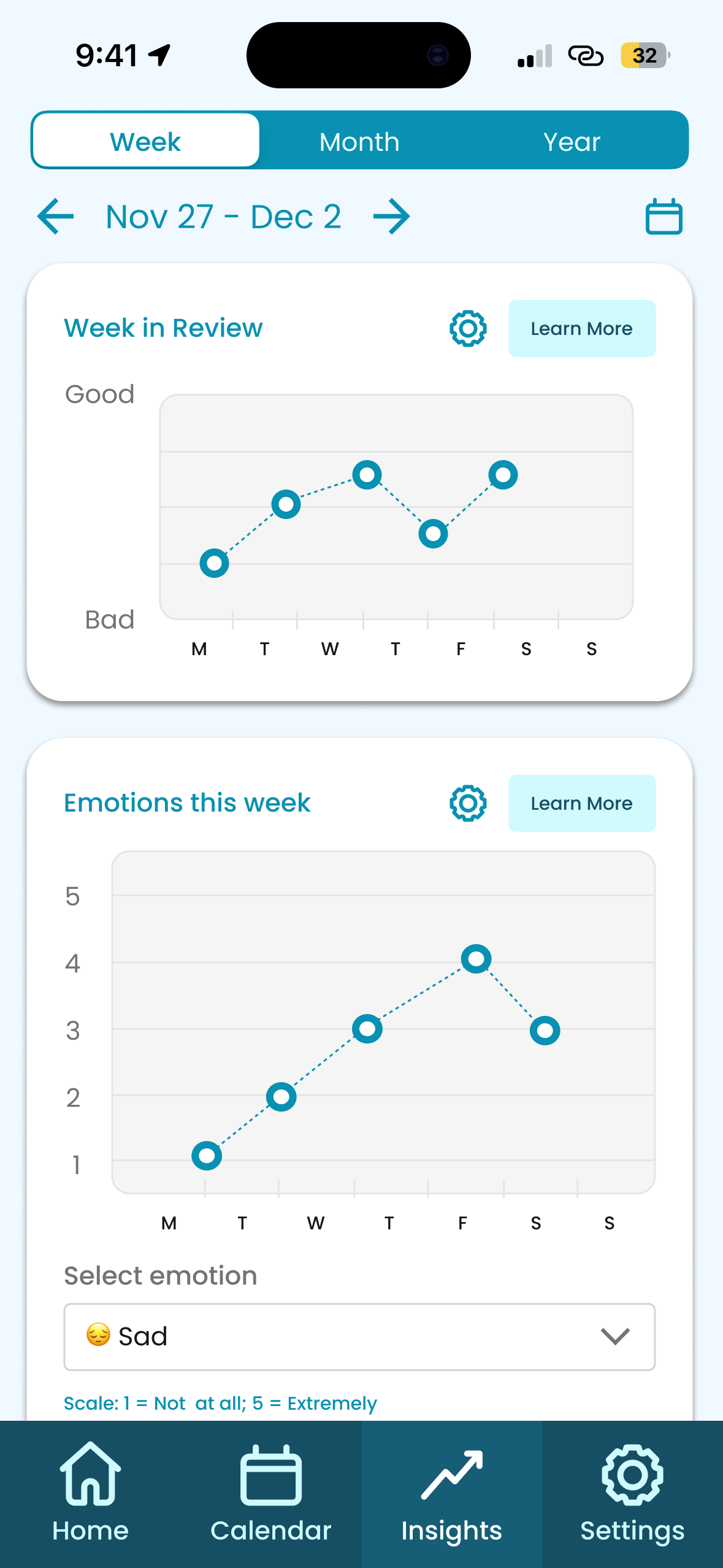 Record will help you assess your emotional trends over time by providing you with mood highlights, music insights and emotion visualizations.