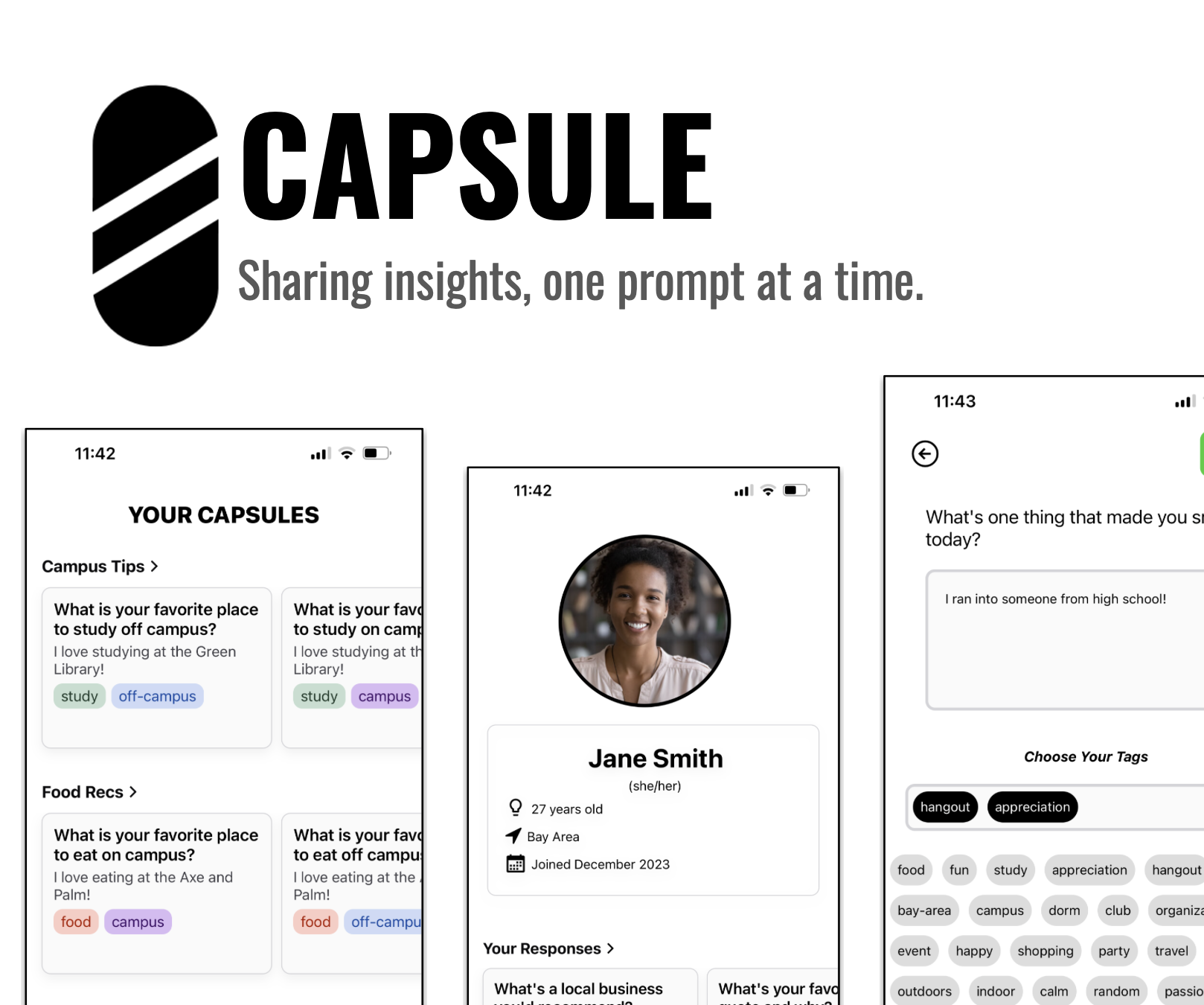 Welcome to Capsule, where connections are made through the sharing of unique, personal insights. Our platform provides a space for individuals to express themselves, learn from others, and build a community, all through the power of thought-provoking prompts we call capsules.