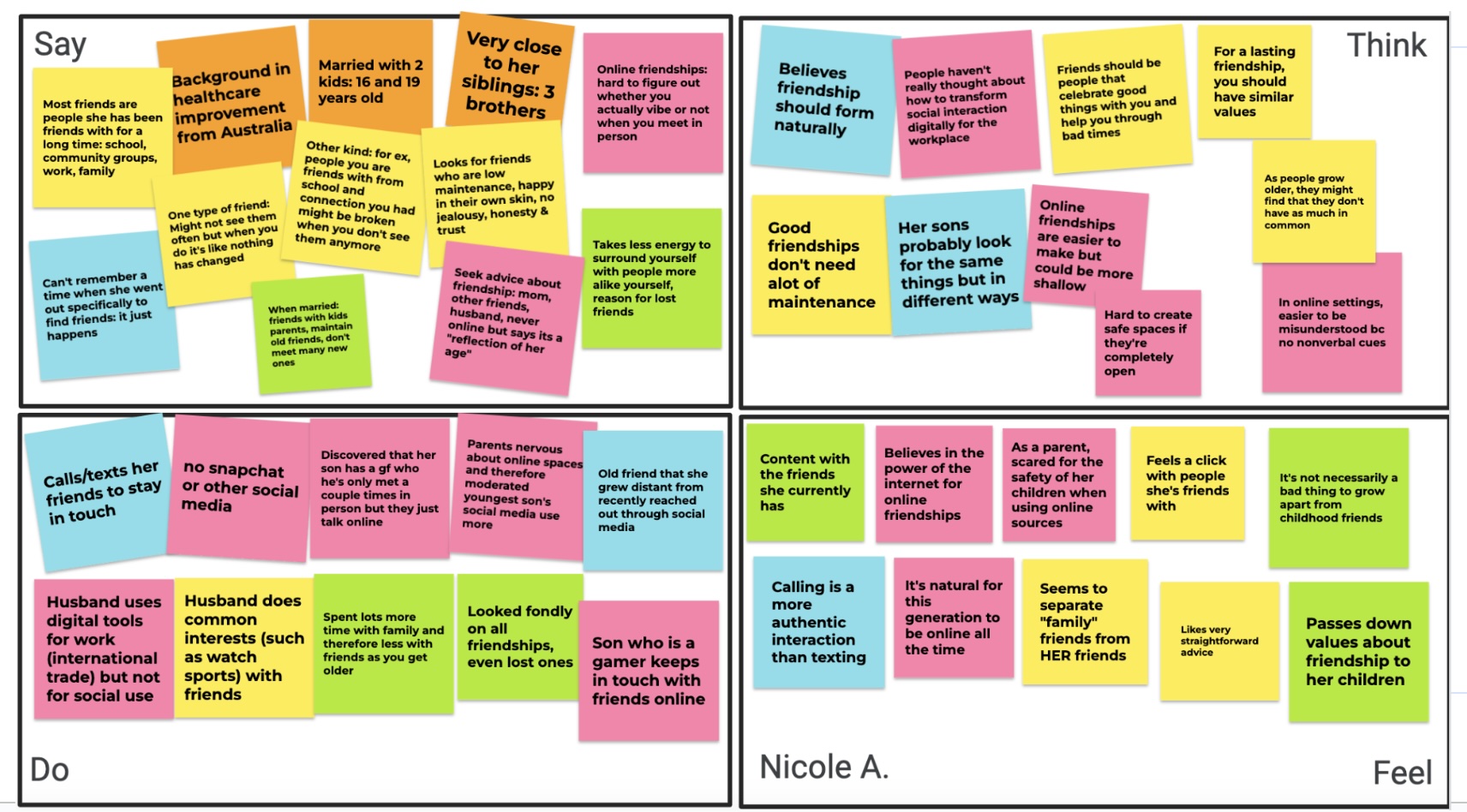 This presentation covers our needfinding interviews to explore the problem space of making and maintaining healthy friendships. We uncovered emotions, pain points, and individual journeys of several interviewees.
