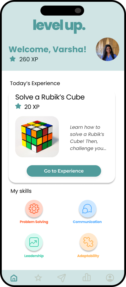 Monitor your growth by earning 'XP' for completed experiences. Our app provides progress graphs that highlight your overall and skill-specific development over time.