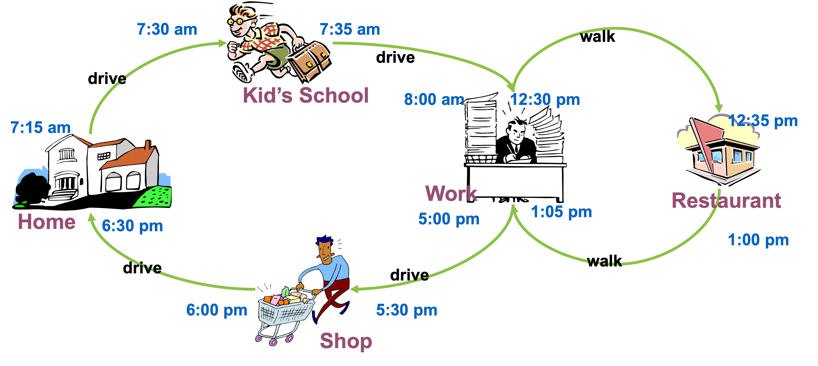 Example: Daily activity-travel pattern of an individual