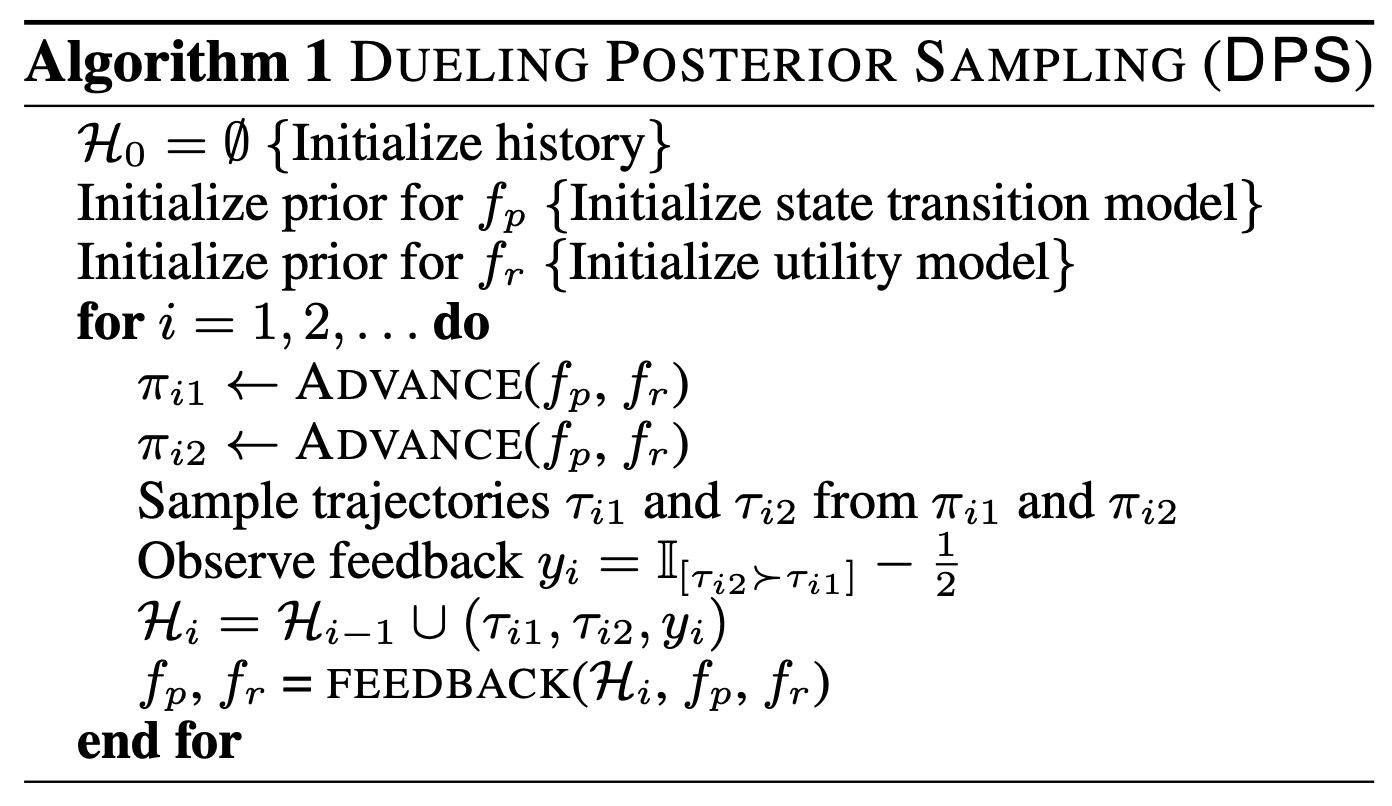 Novoseller, E., Wei, Y., Sui, Y., Yue, Y., & Burdick, J. (2020, August). Dueling posterior sampling for preference-based reinforcement learning. In Conference on Uncertainty in Artificial Intelligence (pp. 1029-1038). PMLR.
