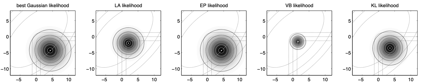 Here is the comparison of some approximate inference methods in likelihood approximation: