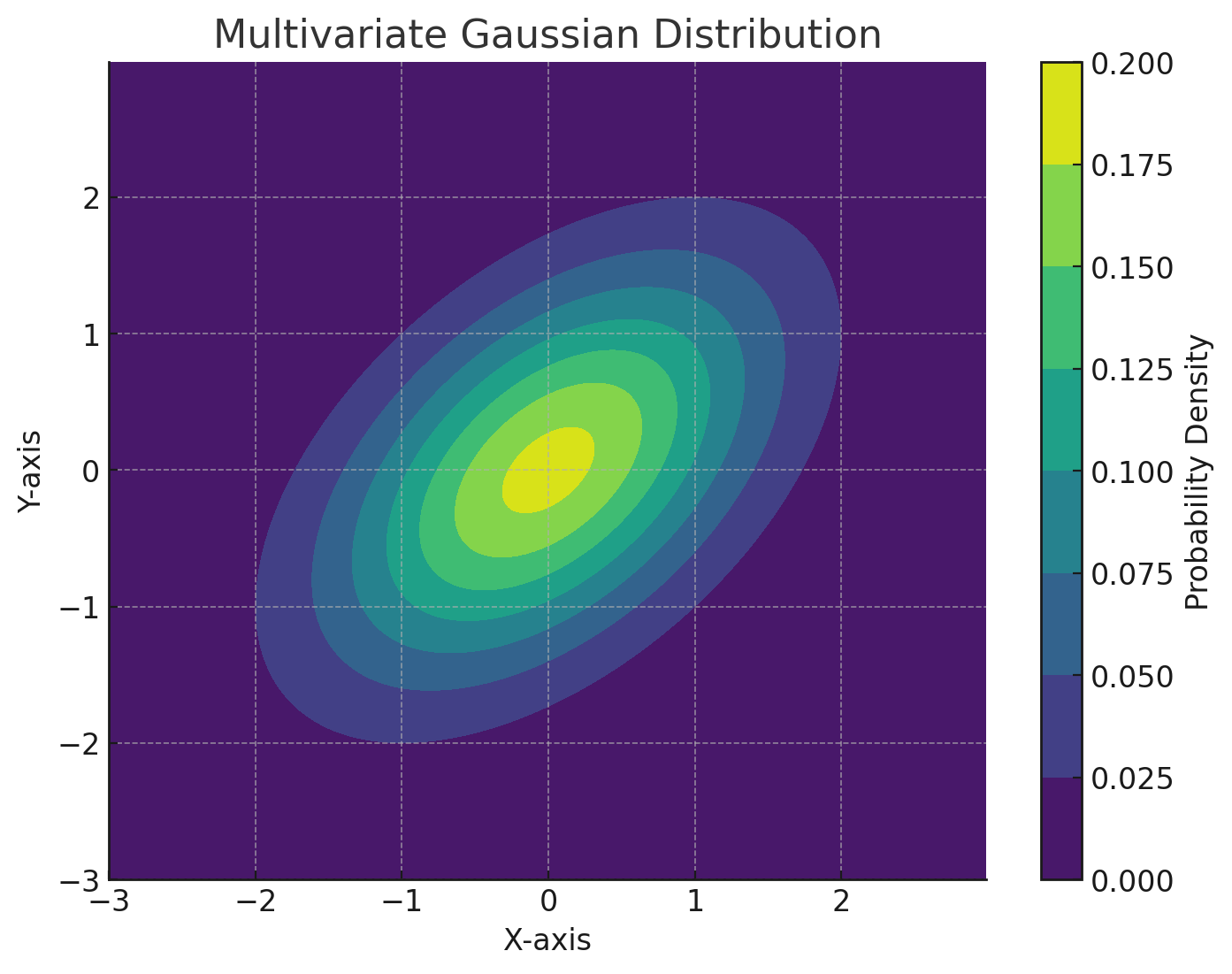 A multivariate Gaussian distribution is a generalization of the one-dimensional Gaussian distribution to higher dimensions by defining a mean vector $\mu$ and a covariance matrix $\Sigma$.