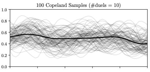 The soft Copeland score can be obtained by integrating the preference score over all possible duels. Thus, it is possible to learn this function from data by integrating $\pi([x, x’], \mathcal{D})$. We can use Monte Carlo sampling to approximate the integral: