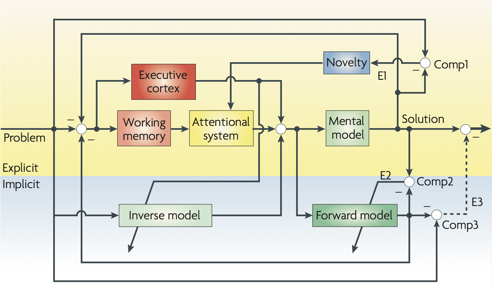 The theory at a glance: from selective signal enhancement to consciousness. About half a billion years ago, nervous systems evolved an ability to enhance the most pressing of incoming signals. Gradually, this attentional focus came under top-down control. To effectively predict and deploy its own attentional focus, the brain needed a constantly updated simulation of attention. This model of attention was schematic and lacking in detail. Instead of attributing a complex neuronal machinery to the self, the model attributed to the self an experience of X — the property of being conscious of something.Just as the brain could direct attention to external signals or to internal signals, that model of attention could attribute to the self a consciousness of external events or of internal events. As that model increased in sophistication, it came to be used not only to guide one’s own attention, but for a variety of other purposes including understanding other beings. Now, in humans, consciousness is a key part of what makes us socially capable.