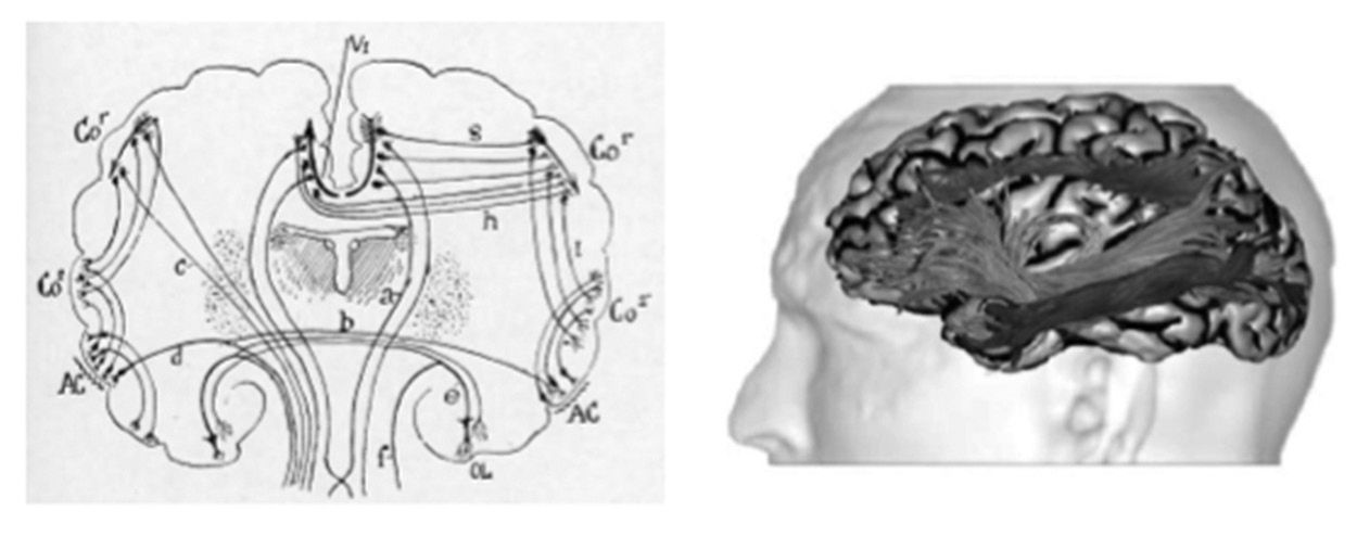 Ignoring the details, we will suppose that we have a graph in which the nodes of the graph correspond to regions of the brain and the edges to bundles of myelinated axons that connect those regions. We will suppose further that we can make reasonable guesses about how information passes along those axons in carrying out tasks that involve the orchestration of multiple regions each one performing different computations contributing to the observed behavior.