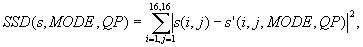 stands for the sum of the squared differences between the original block s and its reconstruction.