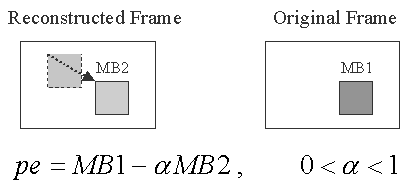 MB header, the motion, and all six DCT blocks. s' (i, j, MODE, QP) relates to the reconstructed