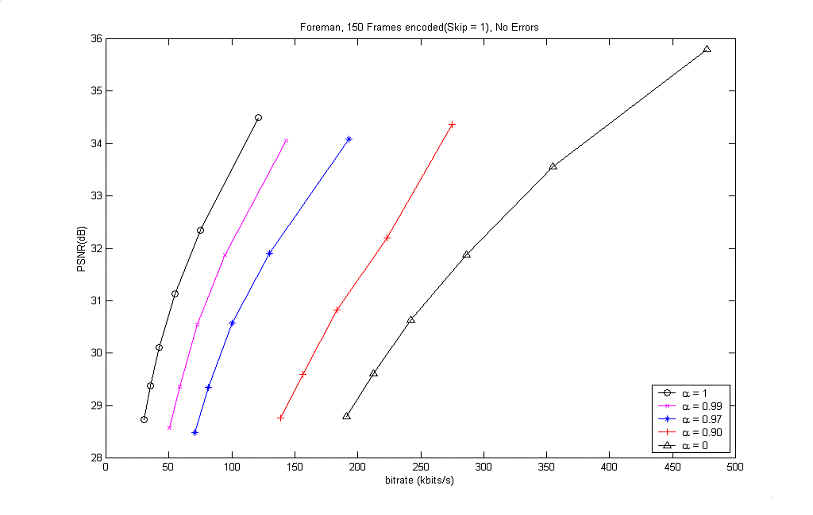 For future work, this experiment should be done to many video sequences with various error patterns. Especially, elaborated feedback scenario will find out the exact behavior of the leaky prediction. And the rate-distortion based coding scheme should consider more variables such as quantization parameter and the skipped mode. Finally, it will be very important to find the best leaky prediction coefficient in methodical way.