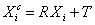 where R and T are rotation matrices and a translation vector defining respectively the orientation