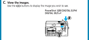 For about two seconds after you take a photo it will appear on the viewfinder screen, but if you want to peruse it at your leisure, you will have to switch the ELPH to Play mode. In Play Mode you can zoom in on your images, to check whether or not they are blurry, and you can also Erase individual images, to make room for more on the Compact Flash Card.