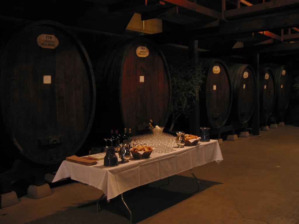 Wine in oak barrels, where the wine extracts flavor from the wood. |