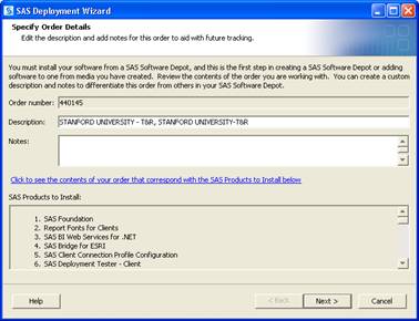 The SAS Deployment Wizard will appear and ask you where you want to save the temporary SAS software depot. This will create a copy of all of the information on all 3 DVDs and it uses up 9.25 gig of hard drive space. Push Next and then tell it where you want to put the depot.