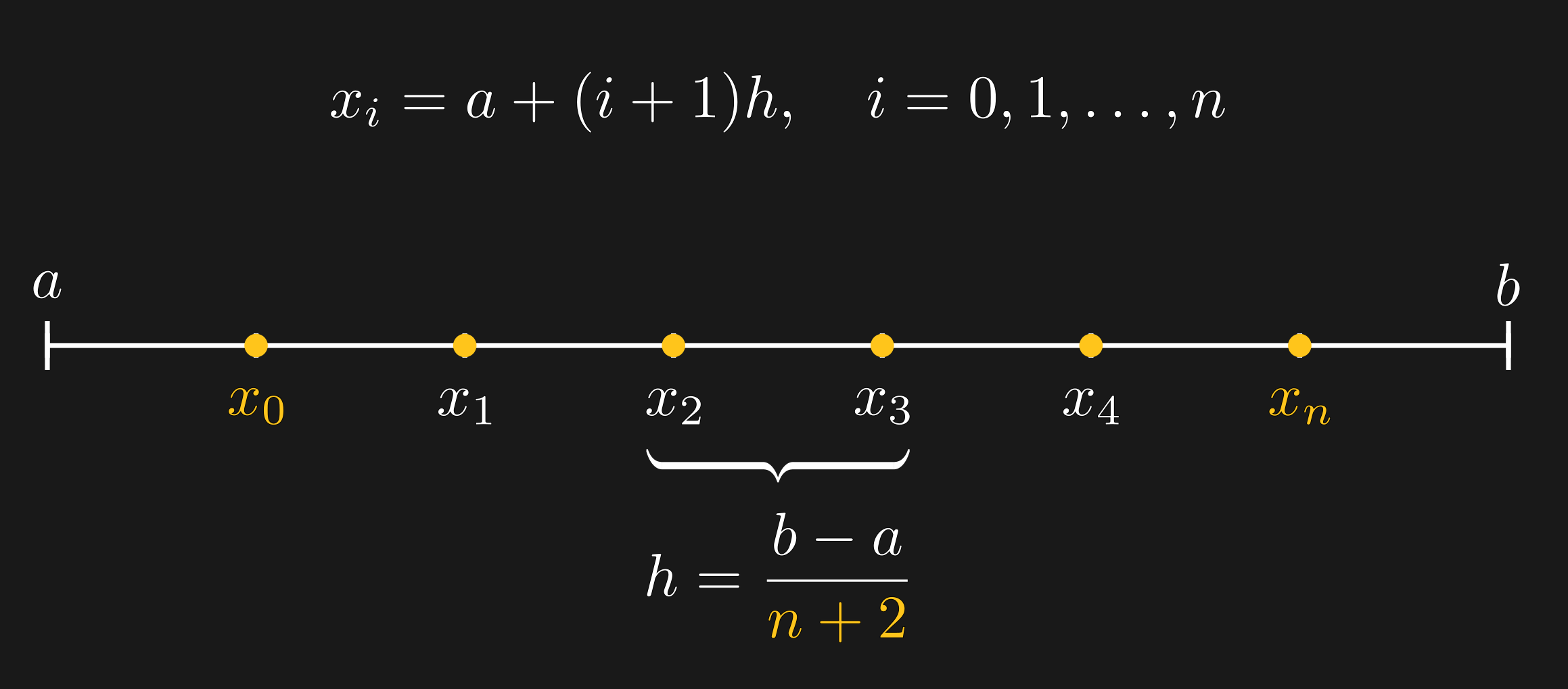 $x_0 = a$ and $x_n = b$.