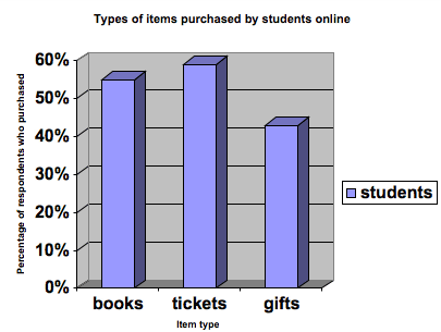 Chart 1: Types of items purchased by students online (click to enlarge) |