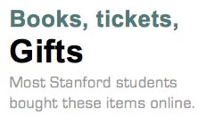 | Books, plane tickets and gifts were purchased most frequently online If students are more willing to buy online, what exactly do they purchase? My findings show that the most popular items with Stanford students are books, plane tickets, and gifts for others.