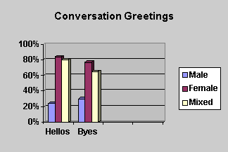 than when just talking to males. Greetings were used 80% of