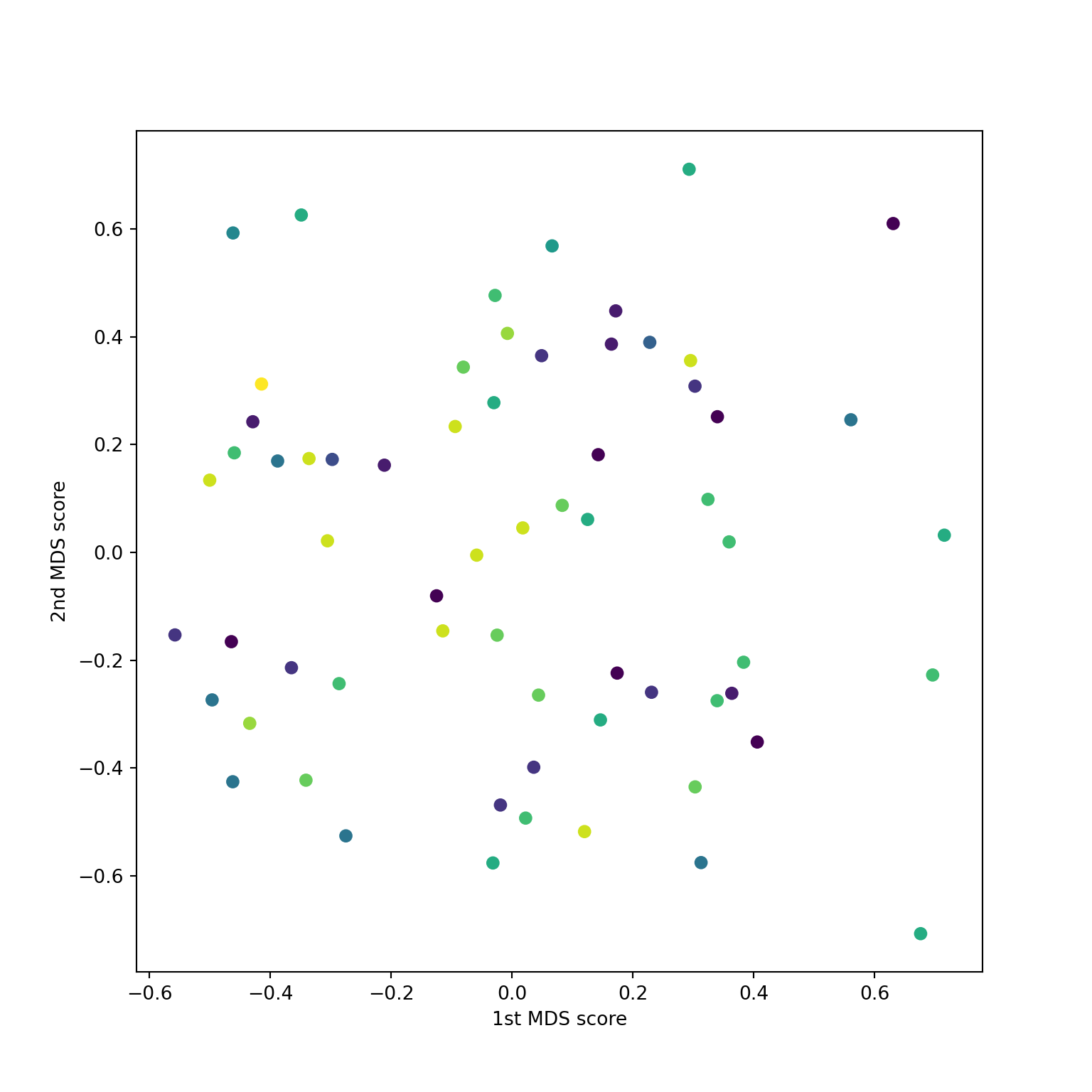 R and sklearn don’t agreesklearn.MDS do?\[ D(y)_{ij} = \|y[i] - y[j]\|_2. \]