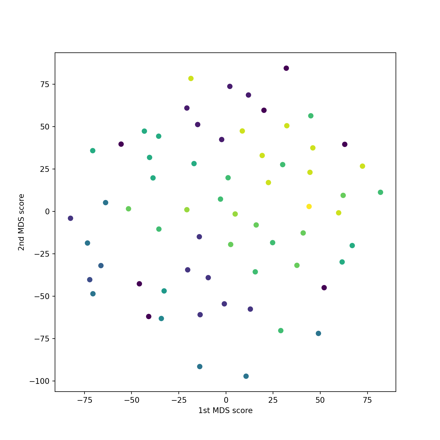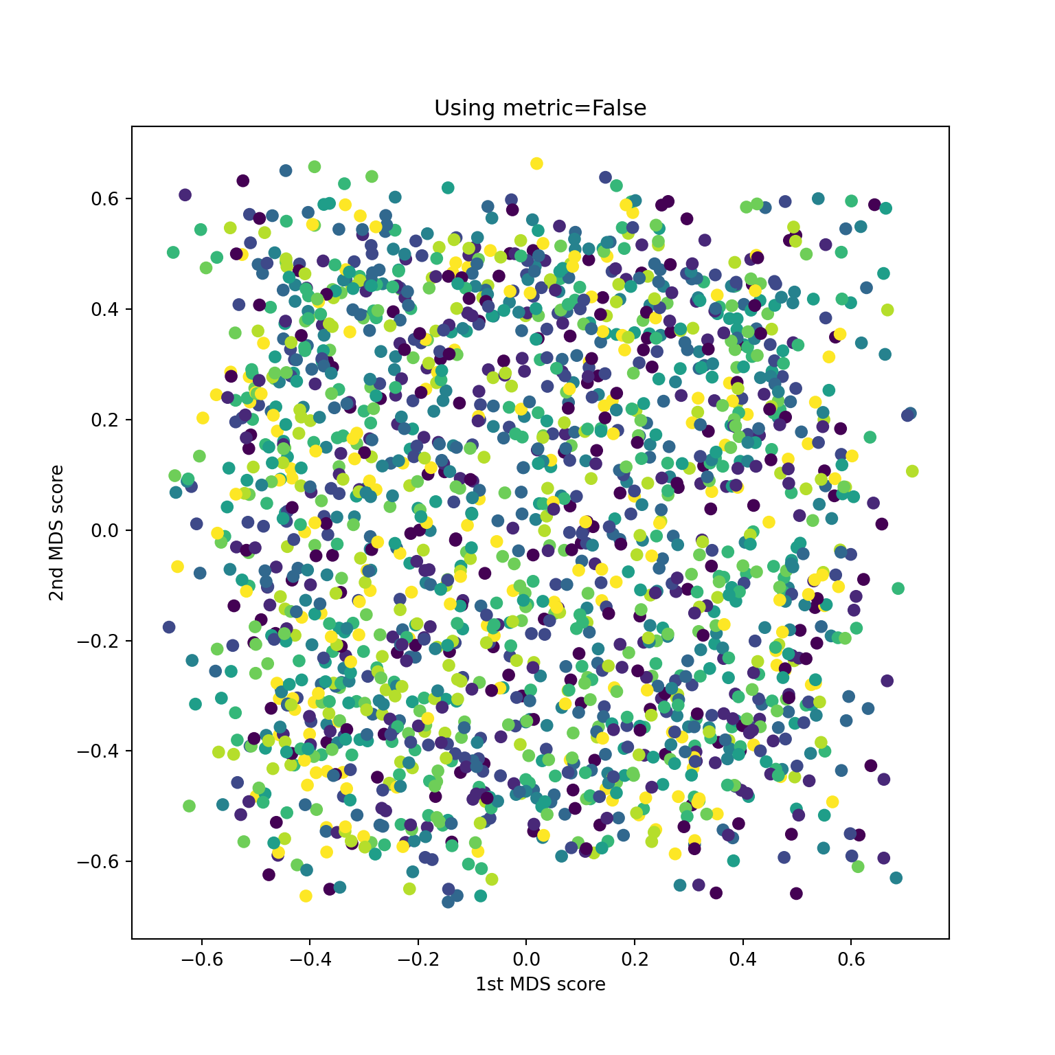 sklearn.MDS on digitsSimilar inputs to classical case: a distance matrix \(D\) and a dimension \(k\).