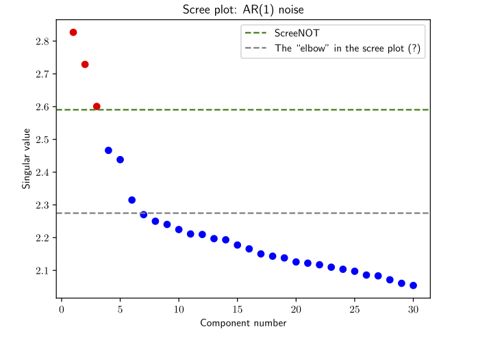 Suggests hard thresholding eigenvalues at \((1 + \sqrt{\gamma})^2\): a formal elbow rule….