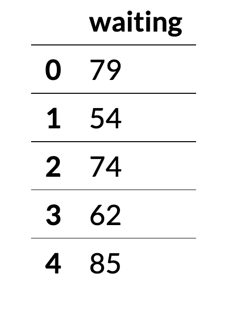Here are some measurements of the number of minutes between eruptions at Old Faithful. The data is from the 1970s.