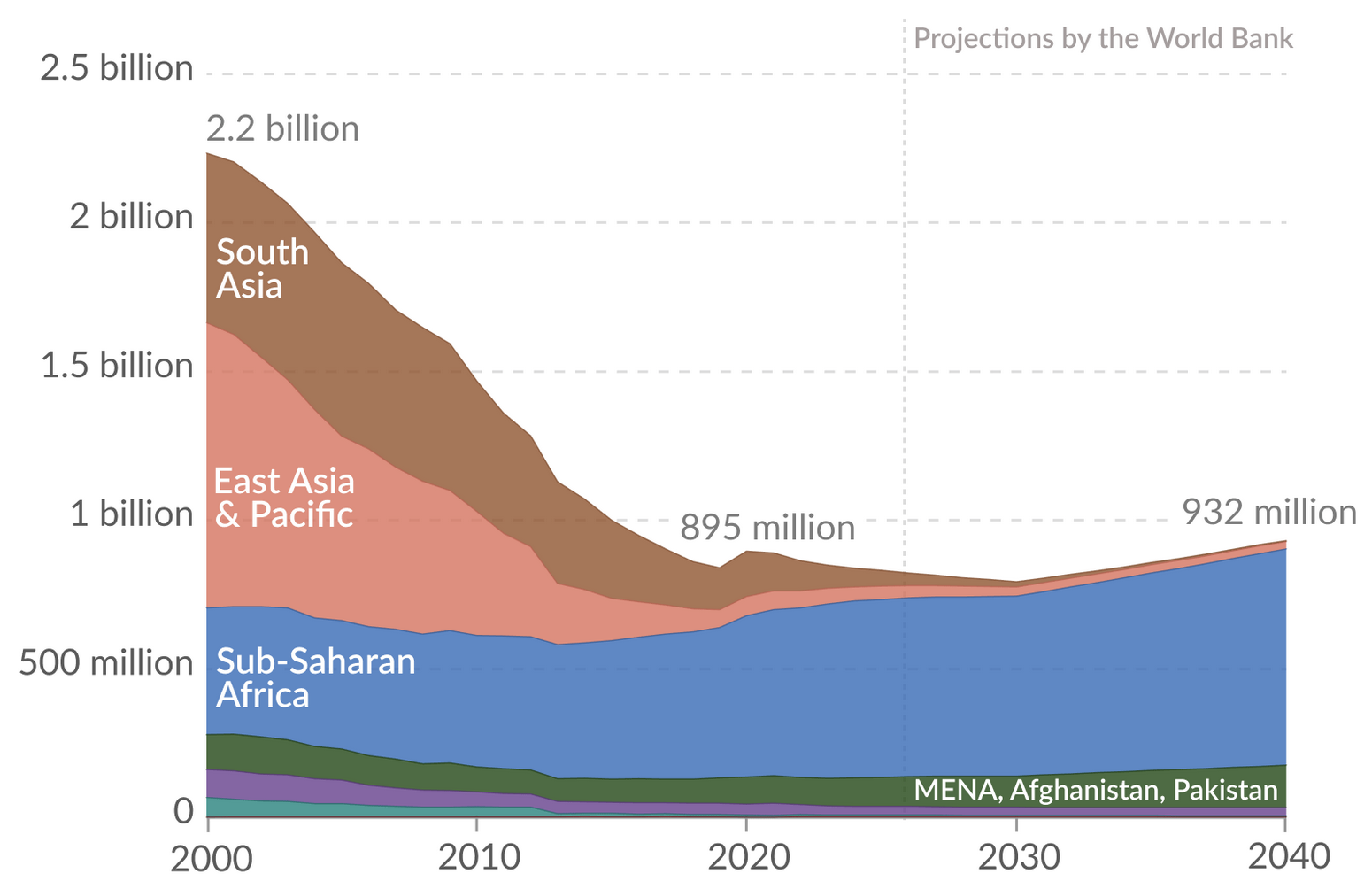 The following graphic is from the article on progress towards ending extreme poverty from Our World in Data.