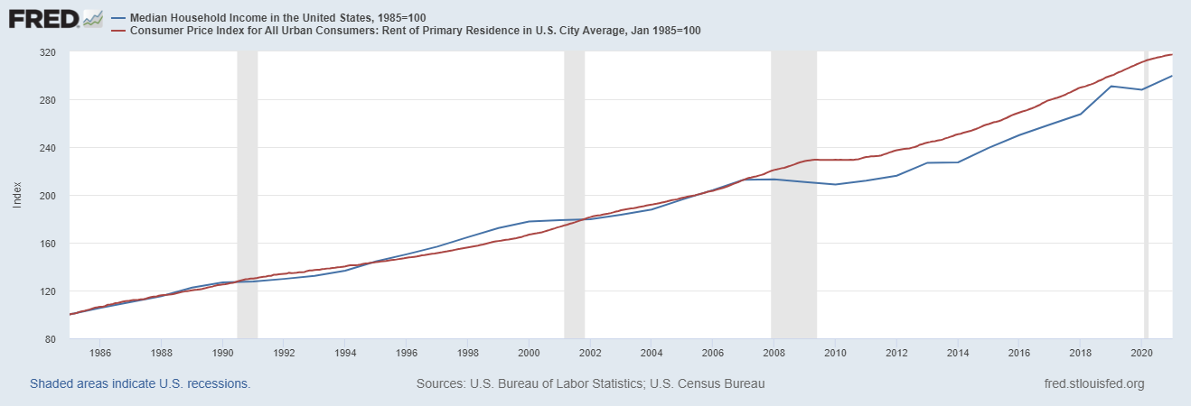 Based on the graph, what percentage of their income would they be spending on housing in 2023?